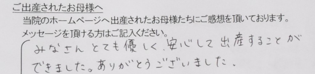 みなさんとても優しく、安心して出産することができました。ありがとうございました