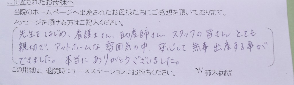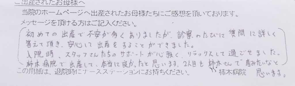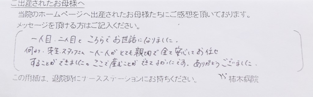 1人目同様、今回も柿木病院にお世話になりました。